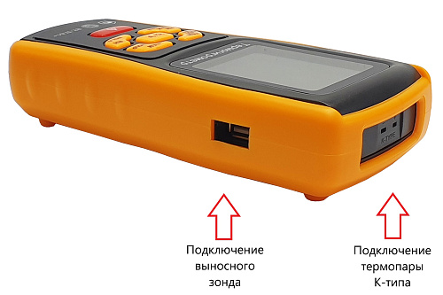 Время измерения параметра, с* - температуры окружающего воздуха / точки росы / влажного термометра (выносной зонд, термопара типа «К») - относительной влажности (выносной зонд) |